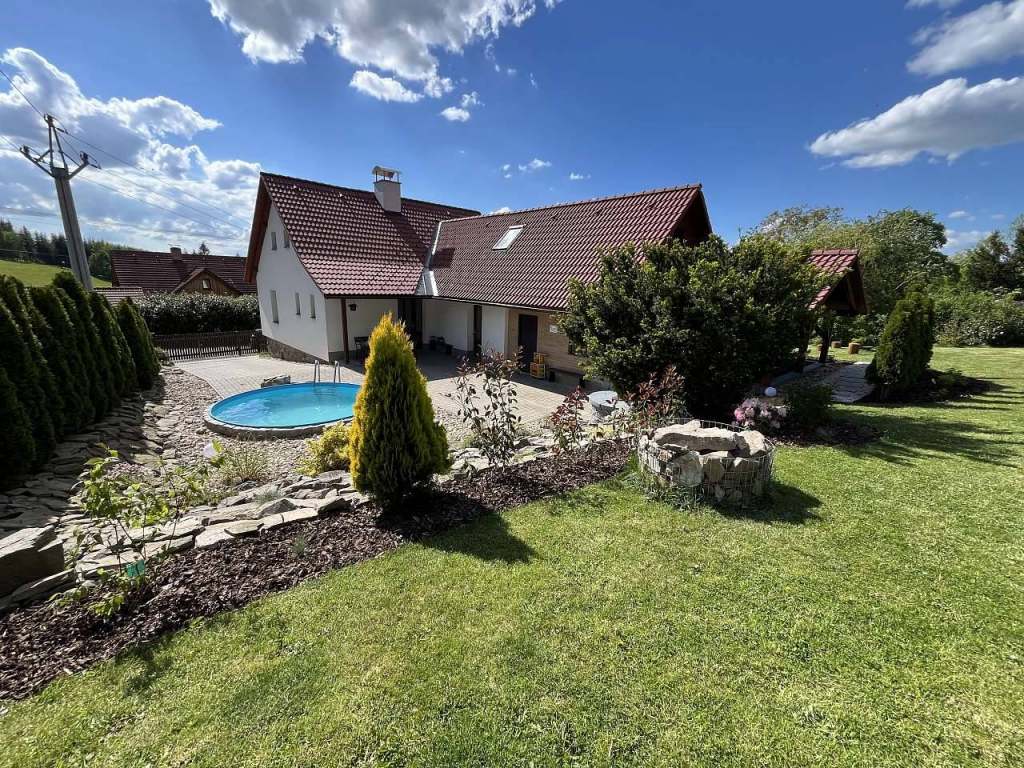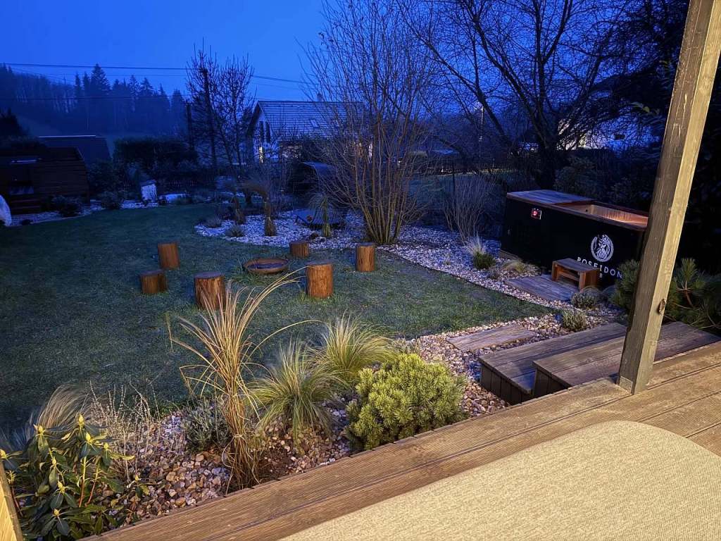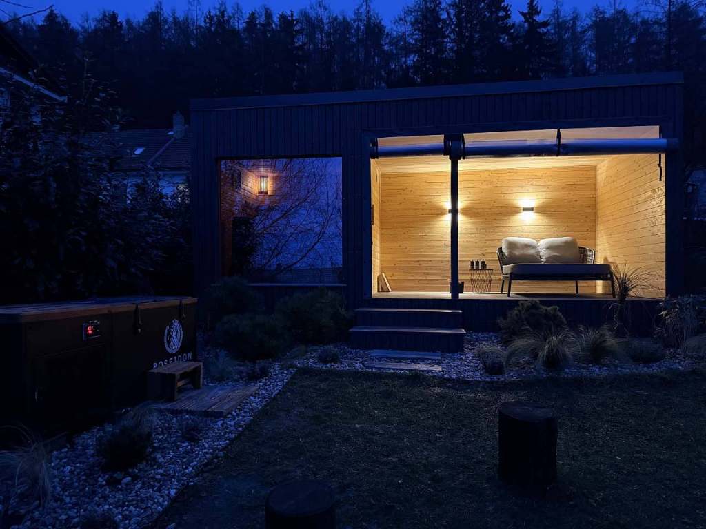 Skutečným srdcem chalupy je <strong>wellness zóna </strong> – <strong>sauna na míru 🔥</strong> s velkým reflexním sklem a výhledem do zahrady, <strong>relaxační odpočívárna a ochlazovací vana PoseidonTub 💧</strong> s nastavitelnou teplotou vody, ideální pro milovníky otužování. <strong>Velká okrasná zahrada </strong>a terasa s dechberoucími západy slunce dotvářejí atmosféru místa, kam se budete chtít vracet. Chalupa je ideální až pro 10 osob (max. 8 dospělých) a nabízí pohodový, domácký pobyt v klidu a soukromí.