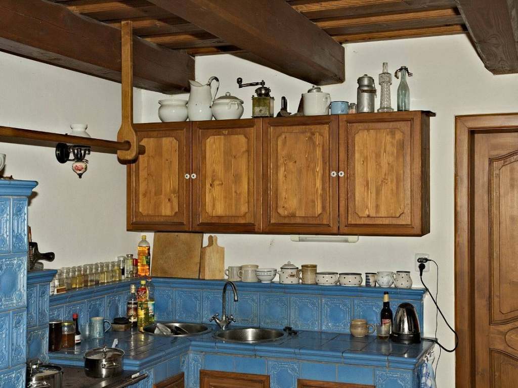 Kuchyň je vybavena nádobím, varnou konvicí a základem pro kuchyň (sůl, cukr, koření, olej). Pokud nezatápíte v kamnech, je pro vaření k dispozici elektrický vařič (1 ploténka). V chodbě je lednice. Majitelka má v přízemí osobní věci ve vyhrazených skříňkách, které jsou označeny nálepkou „privát“.