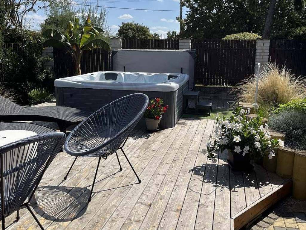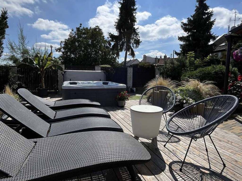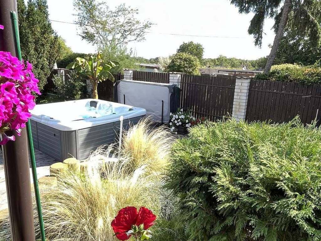 Venkovní vybavení: terasa s vířivkou pro 5 osob, posezení pod pergolou s grilem, herna s vinotékou a stolním fotbalem, vzdušný hokej, elektronické šipky, solární sprcha, dětské pískoviště, dětský koutek.