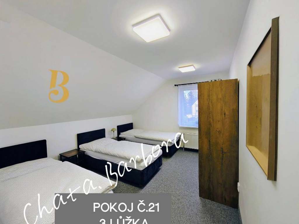 Nově nabízíme k pronájmu celé druhé patro chaty které budete mít pouze pro sebe. Je ideální pro skupiny přátel, rodiny, nabízí soukromí s pohodlím kapacitou 19 lůžek. Po rekonstrukci, nově vybavené, disponuje velkými okny s nádherným výhledem.. Na více jak jednu noc je k dispozici plně vybavená kuchyně s jídelnou kde si pohodlně připravíte vše od ranní kávy po společnou večeři. Chcete si pobyt ještě více zpříjemnit? Od pondělí do čtvrtka máte možnost využít rozšířené zázemí chaty. Restaurace s terasou ideální pro odpolední drink na čerstvém vzduchu. Krytá venkovní pergola s grilem perfektní místo pro večerní grilování bez ohledu na počasí a hernička pro děti.