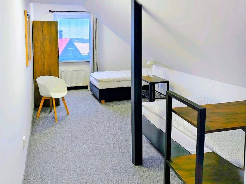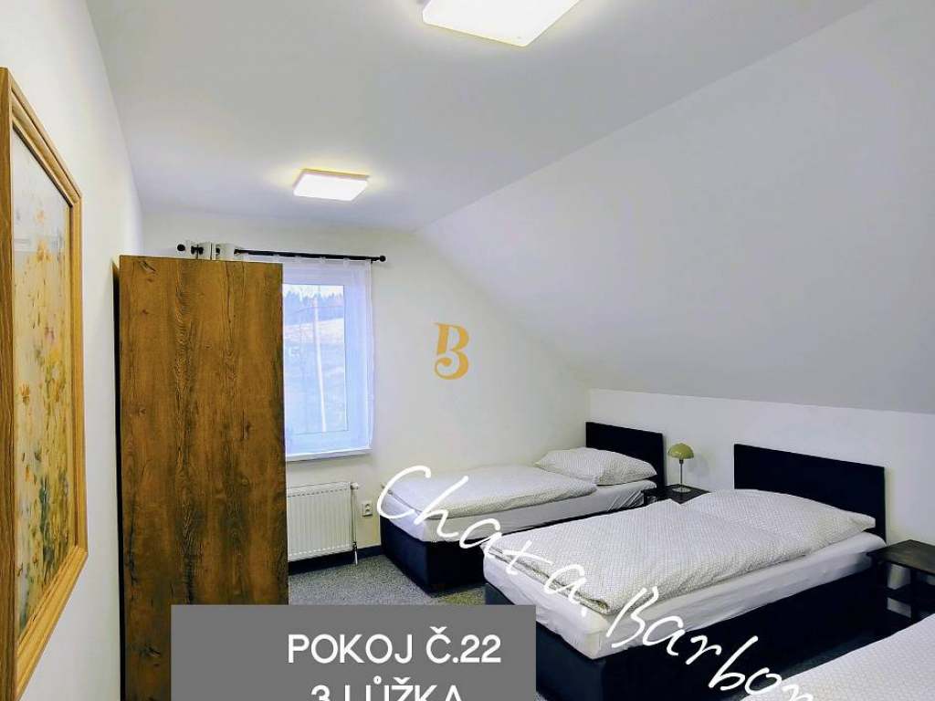 Nově nabízíme k pronájmu celé druhé patro chaty které budete mít pouze pro sebe. Je ideální pro skupiny přátel, rodiny, nabízí soukromí s pohodlím kapacitou 19 lůžek. Po rekonstrukci, nově vybavené, disponuje velkými okny s nádherným výhledem.. Na více jak jednu noc je k dispozici plně vybavená kuchyně s jídelnou kde si pohodlně připravíte vše od ranní kávy po společnou večeři.
