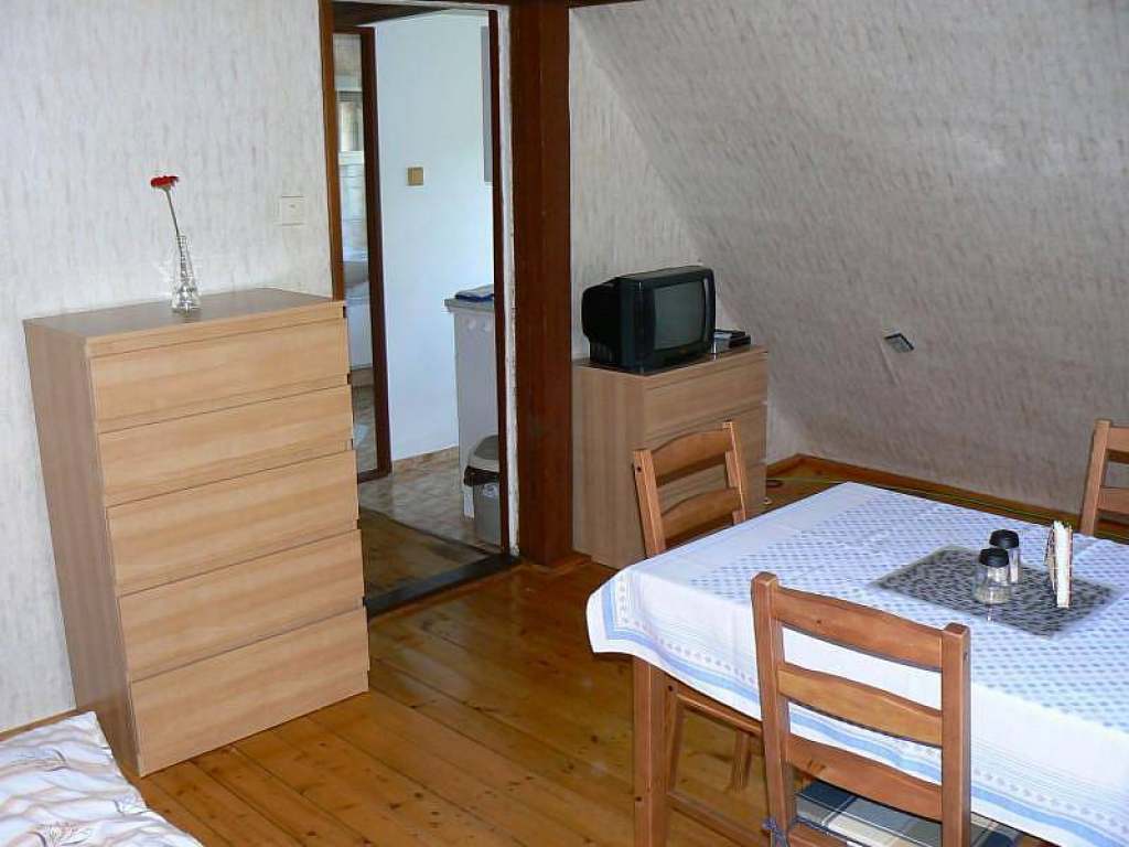 K dispozici je turistům celé 1.patro (apartmán) se samostatným vchodem do domu, se sociálním zařízením, chodbičkou a kuchyňkou. Jeden pokoj je dvoulůžkový a druhý čtyřlůžkový. Oba pokoje jsou vybaveny televizorem. Přízemí domu je volné.