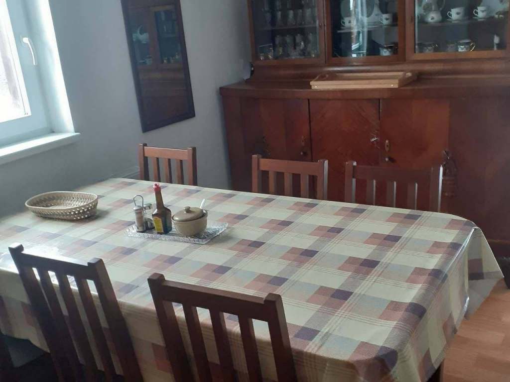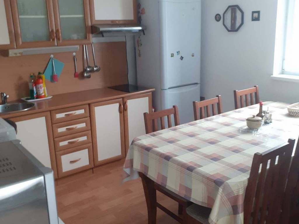 APARTMÁN č. 1: Kuchyně - kuchyňská linka, všechno nádobí na vaření a stolování pro 10 osob, + sklo na víno a alkohol, indukční vařič, mikrovlnka, velká lednice + šuplíkový mrazák, varná konvice, topinkovač, remoska, pečící trouba. Jídelní stůl pro 8 osob.