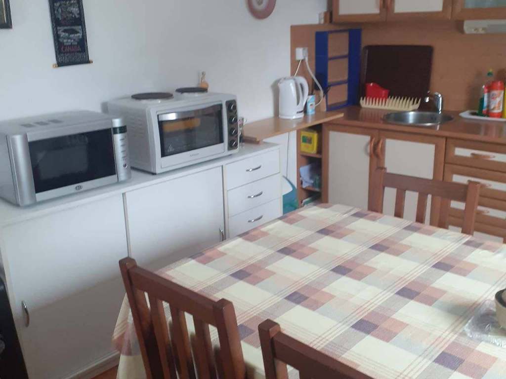 APARTMÁN č. 2: vybavení kuchyňské linky na vaření a stolování pro 6 osob, indukční deska, mikrovlnka, malá pečící trouba, varná konvice, malá lednice. V obou apartmánech jsou k dispozici čistící prostředky, utěrky, pytle na odpad a toal. papír
