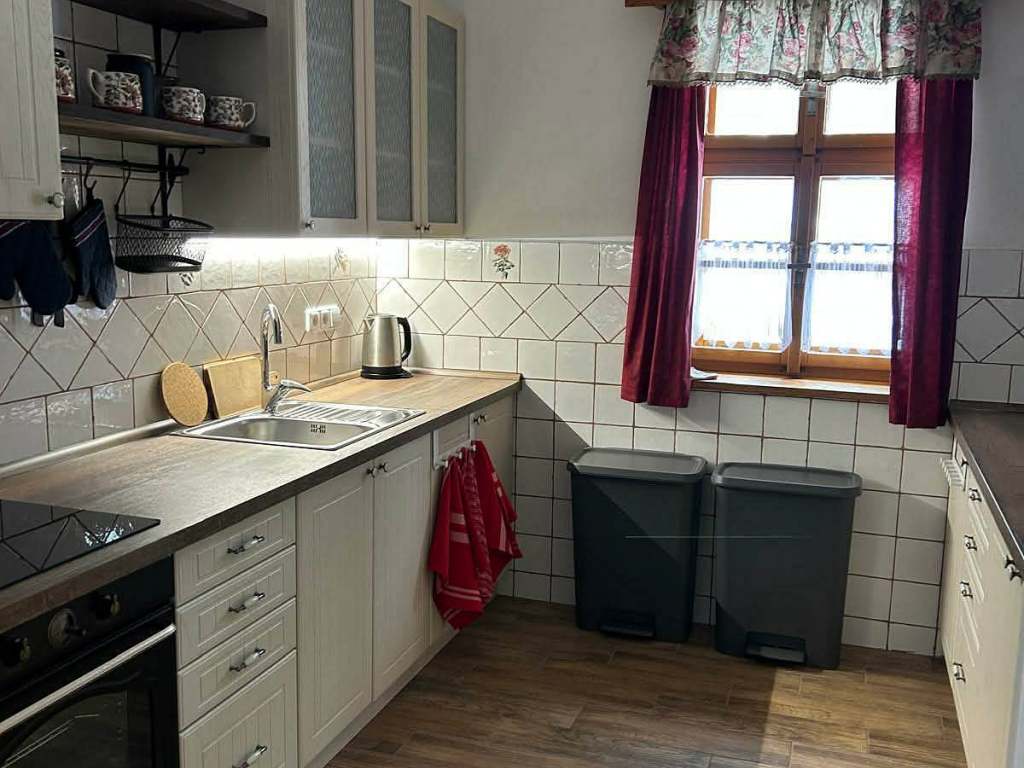 V chatě se nachází společná kuchyň s dostatečnou kapacitou pro všechny ubytované hosty. Je plně vybavená nádobím pro přípravu jídla i jeho servírování. Je zde i dostatečná kapacita pro uložení potravin - 2 lednice.