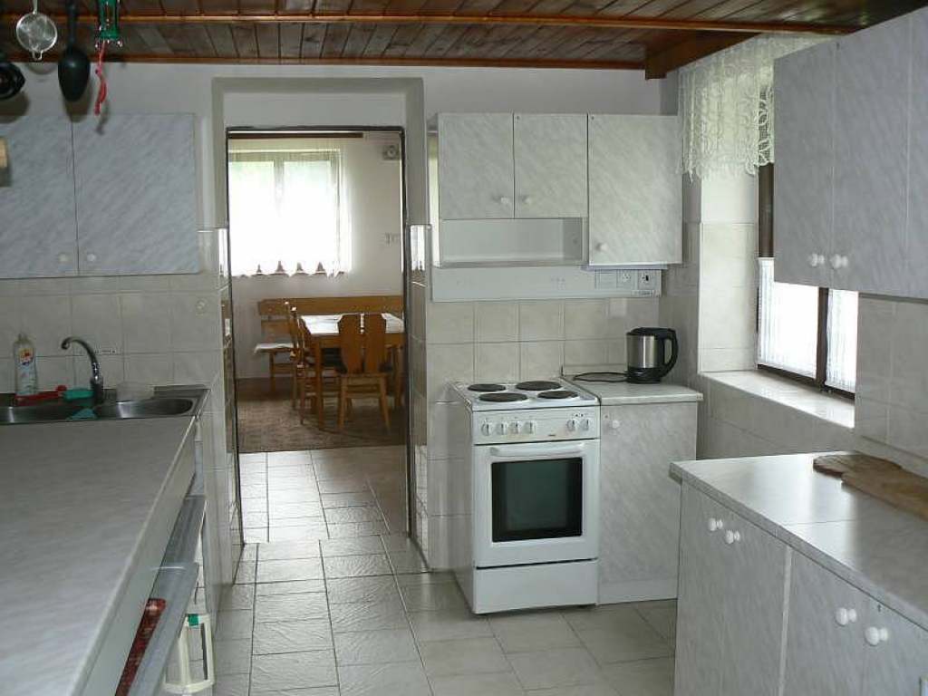 Dále je zde plně zařízena společná kuchyň, kde si mohou rekreanti vařit. Každý pokoj má k dispozici vlastní plně vybavenou skříňku kuch. potřebami + ledničku. K dispozici je mikrovlnná trouba a varné konvice, toustovač, kuchyňská el. kamna.