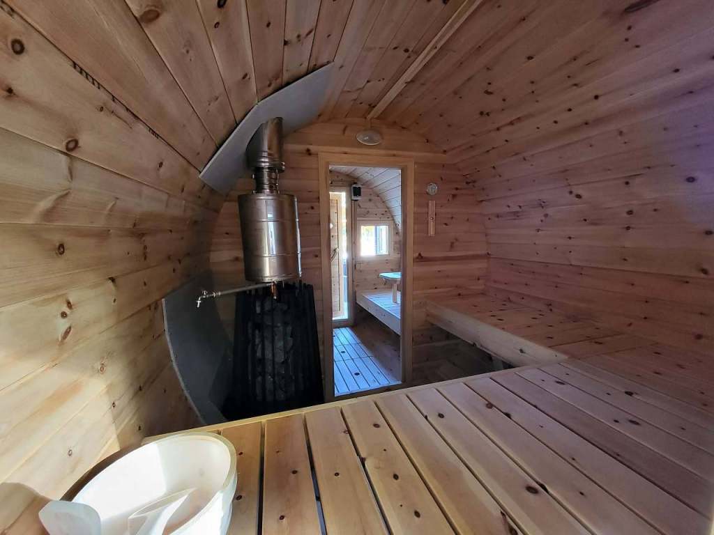 Kolem chaty je soukromý uzavřený pozemek: travnaté hřiště s brankami a sítí, 2 venkovní solární sprchy na osvěžení, velké dětské hřiště (houpačky, prolézačky, pískoviště, klouzačka, kreslící tabule), ohniště s posezením, posezení pod zastřešenou pergolou s grilem na dřevěné uhlí, posezení na zpevněném prostoru se slunečníky před chatou, k dispozici i venkovní hry: pétanque, kroket, dětské kuželky, badminton, soft tenis, švihadla, skákací gumy, ruské kuželky, venkovní uzamykatelné kontejnery k úschově kol, koloběžek, lyží, kočárků (střeženy kamerovým systémem), parkování na soukromém pozemku přímo u chaty pro pro 6 - 8 aut (střeženo kamerovým systémem). Venkovní wellness zóna (sauna, koupací sud Furako, ochlazovací vědro, solární sprcha, lehátka).