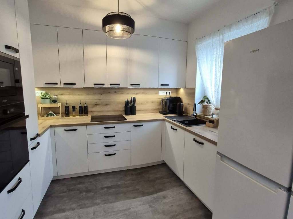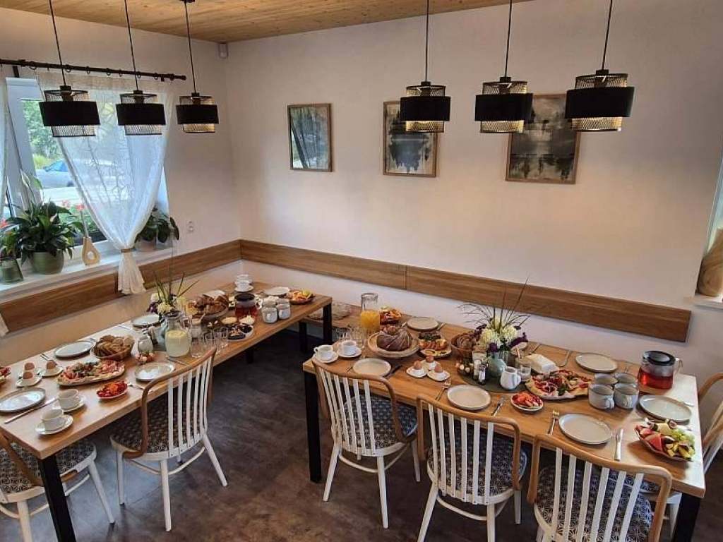 Kuchyň je plně vybavená a připravená poskytnout hostům maximální komfort. Najdete zde troubu, 2x myčku nádobí, 2x ledničku, mikrovlnnou troubu, kávovar Delongi, varnou desku, varnou konvici, toustovač, topinkovač, mixér, SodaStream, výrobník ledu a horkovzdušná fritéza. V kuchyni najdete vinotéku i výčepní zařízení. Samozřejmostí je dostatečné množství nádobí a kuchyňského příslušenství, které umožní pohodlnou přípravu jídel po celý pobyt. Na kuchyň plynule navazuje jídelna se dvěma stoly, lavicí a židlemi, která poskytuje dostatek prostoru pro společné stolování celé rodiny či skupiny přátel. V navazujícím obývacím pokoji se nachází pohodlná sedací souprava, dvě křesla, konferenční stůl, televize a krbová kamna, která dodávají místnosti příjemnou atmosféru a útulné teplo v chladnějších dnech. Prostor je ideálním místem pro odpočinek, zábavu i společné večery u praskajícího ohně.
