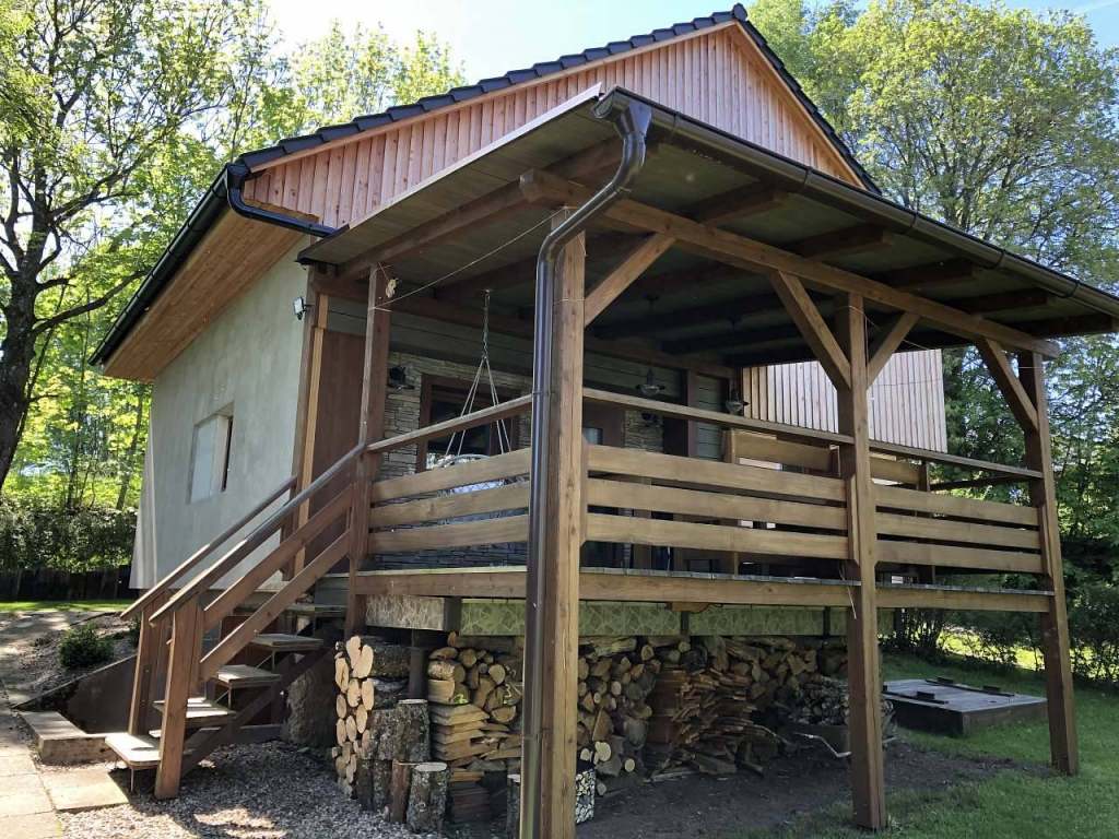 Chata je částečně podsklepena, kde v první části se nachází vodárna a ve druhé části garáž na kola, lyže, zahradní věci, rybářské potřeby, paddleboardy, atd……V zimě je zde možné využít dlouhý radiátor na sušení lyžáků.