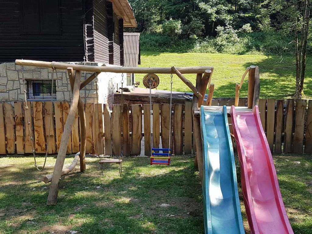 Pro děti multifunkční stůl - fotbálek / kulečník, šipky, hrací koutek pro ty nejmenší, pískoviště, houpačka, skluzavka, trampolína. Venku otevřené ohniště, gril a nadzemní bazén.