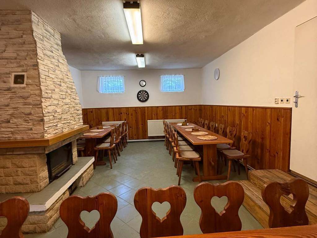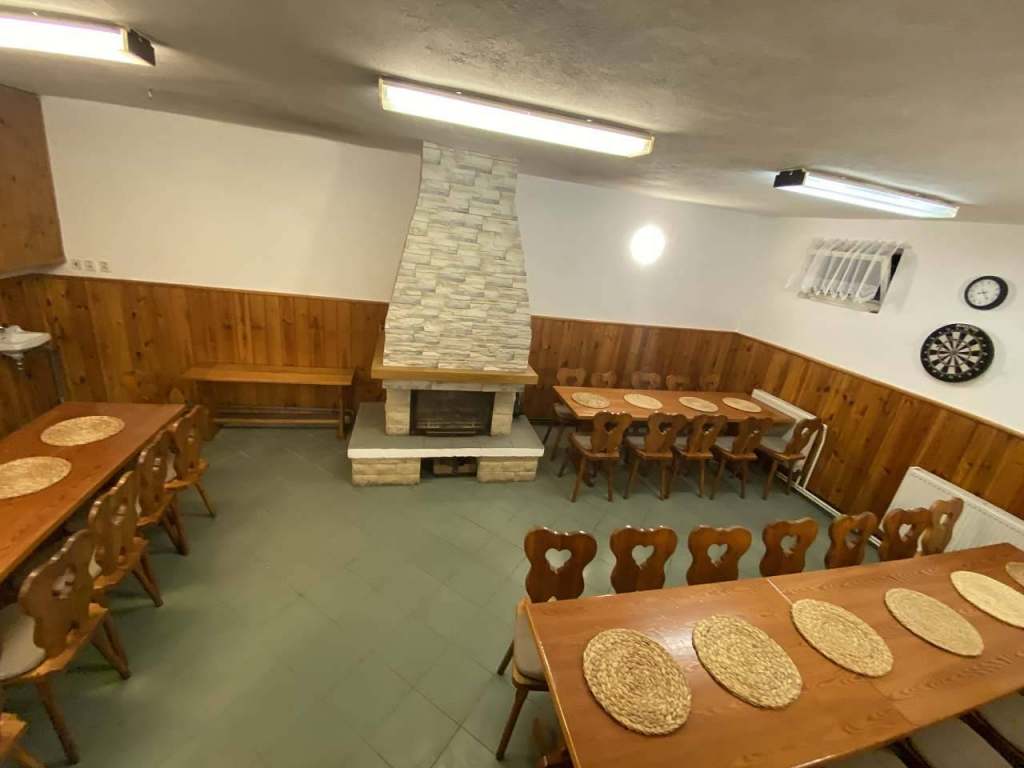 Dále nabízí společnou, plně vybavenou kuchyň, spižírnu se třemi lednicemi a mrazákem, dvě společenské místnosti, jednu s krbem a šipkami a druhou s multifunkčním stolem - fotbálek / kulečník a TV; lyže a jízdní kola možno schovat v chatě.