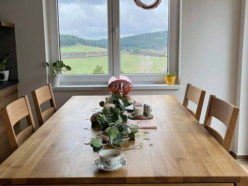 Co byste si rozhodně neměli nechat ujít při pobytu v Domečku Jalovčí? Rána v tichu lesa a budíček v podobě kohouta. Probudit se bez budíku, otevřít okno a slyšet jen ptáky a místo budíčku kohout, vítr v korunách stromů a občasné srnky v údolí. Tohle není klišé – tady je to realita. Večery u ohně nebo krbu. Jakmile se setmí, přichází kouzlo. Praskající oheň, hvězdná obloha bez světelného smogu a pocit, že čas plyne pomaleji než kdekoliv jinde. Výhledy do krajiny, které se neokoukají. Domeček stojí v samotě u lesa s otevřeným výhledem do údolí. Ranní mlhy, zlaté západy slunce i jasné noci – každé denní světlo tu má jinou náladu.