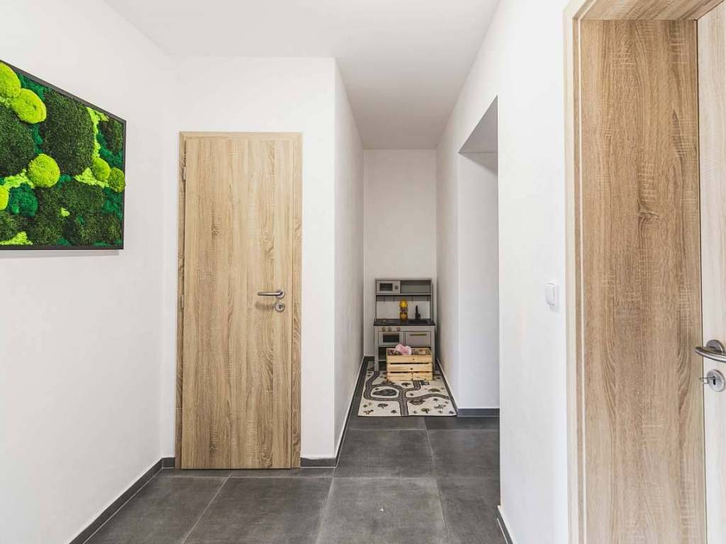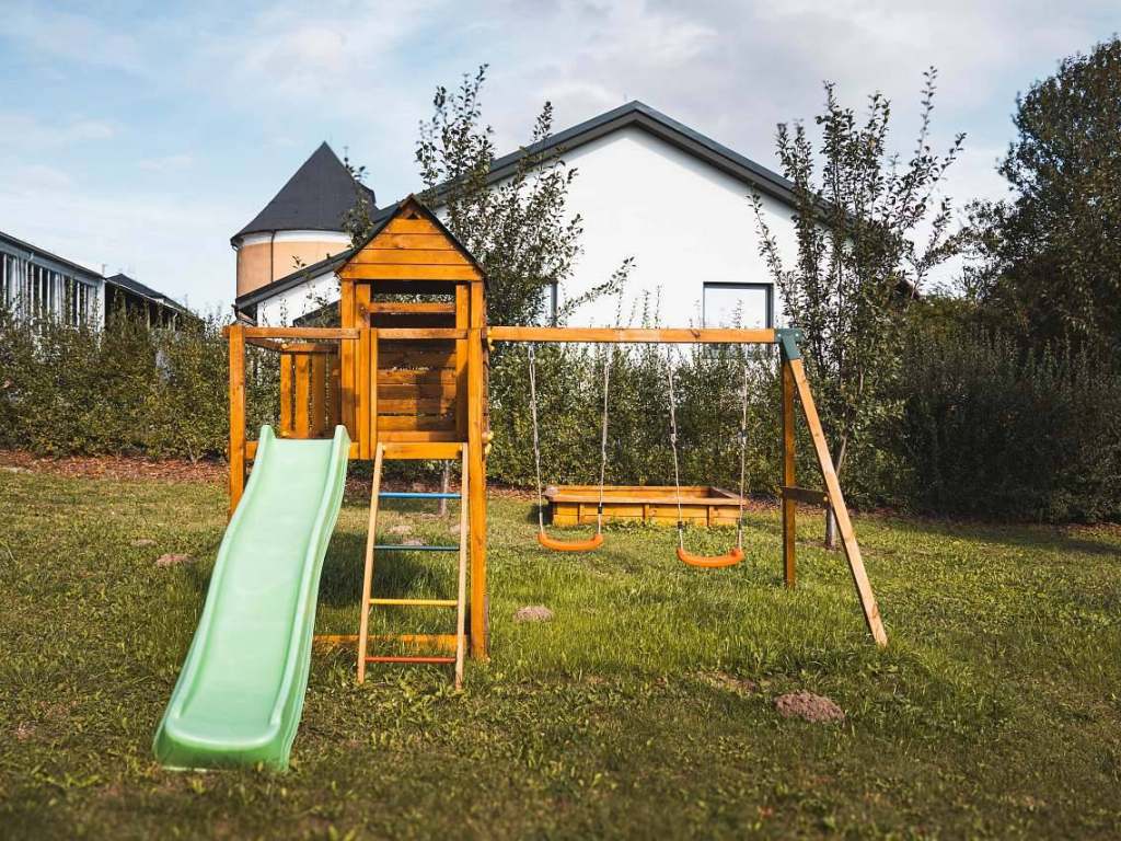 DOMEK má plně vybavenou kuchyni včetně myčky nádobí. Ložnice jsme vybavili postelemi z masivu, kvalitními matracemi a povlečením, do kterého se budete chtít schoulit hned po příjezdu. A venku? Tam to začíná žít. Na zahradě najdete dětské hřiště, houpačky, terasu, gril i ohniště, sauna a koupací sud.