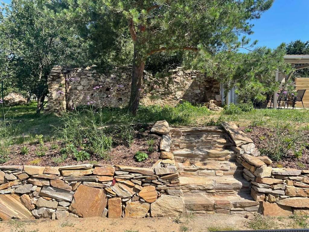Žlutý apartmán má okna orientovaná na sever a je přístupný ze zahrady přes dřevěnou terasu s posezením.