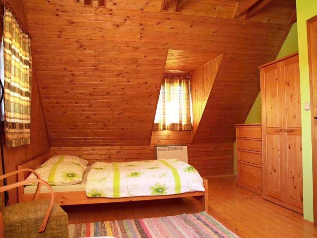 Prenajíma sa celá drevenica, nie samostatné lôžka, vhodné pre 2 až 8 osôb v jednej, maximálne 18 osôb v obidvoch naraz. Drevenice sú rovnako dispozične riešené, v každej z nich ubytujeme len jednu samostatnú skupinu. Dvojpodlažná, podkrovná drevenica, rozľahlý pozemok naokolo. 2 izby, kúpeľňa, 2 wc, kuchyňa, obývačka, rohový krb, elektrické vykurovanie viac, 2 kryté altánky s posedením, grilom a ohniskom.