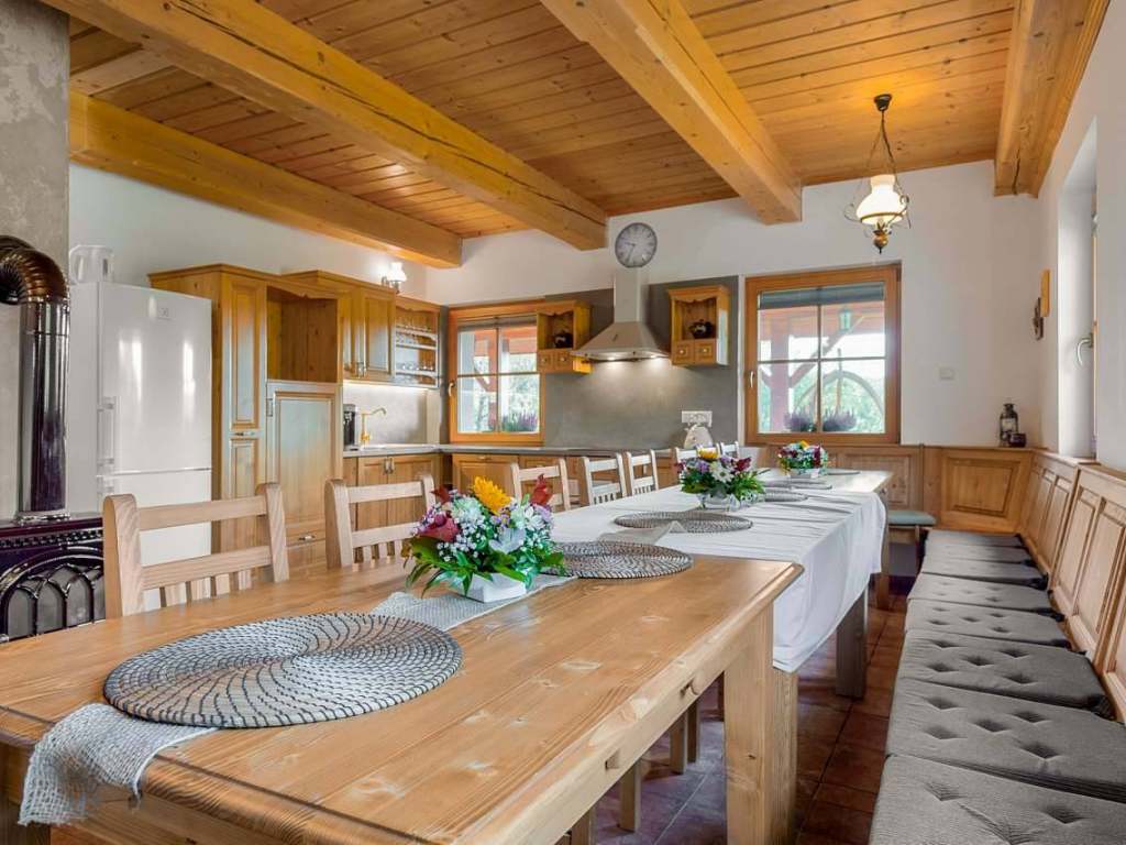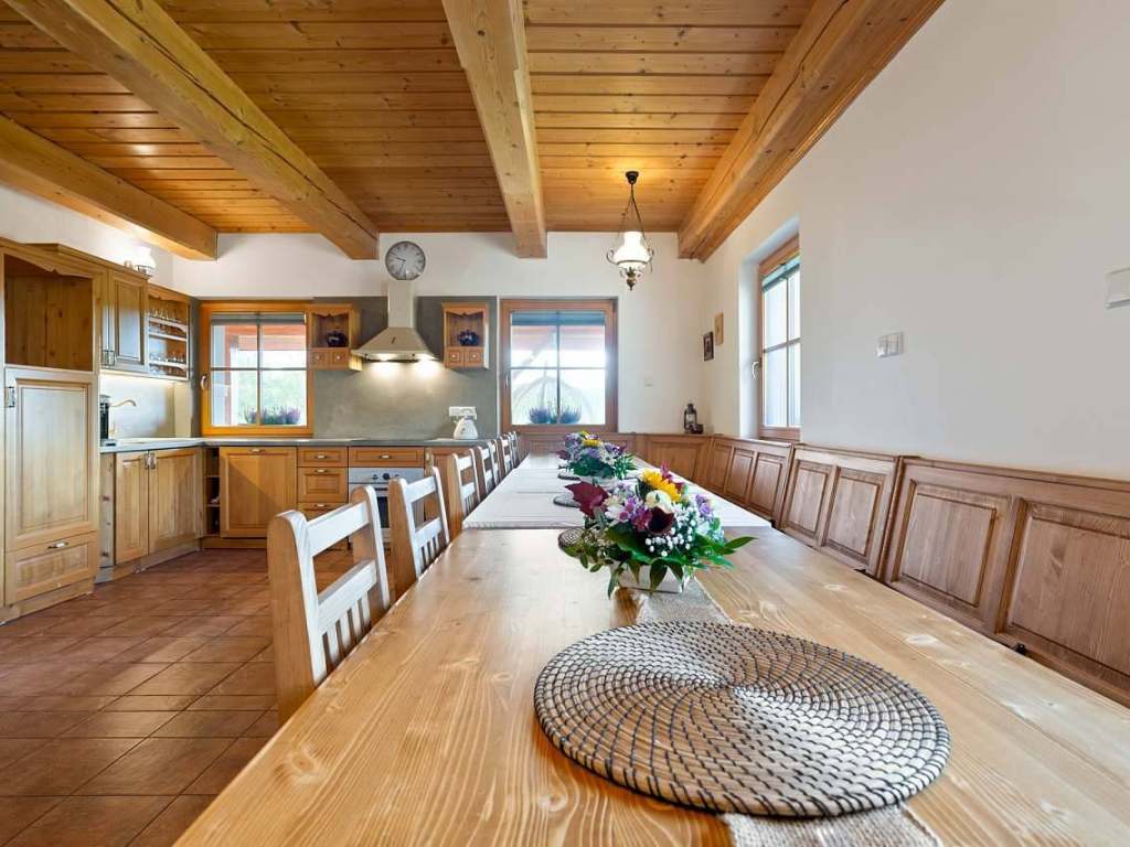 Celý interiér obou chalup je vkusně zařízen stylovým nábytkem z masivu, komfortní kuchyňská linka je také vyrobena na míru z masivního dřeva a je vybavena nádobím pro každodenní vaření či pečení.