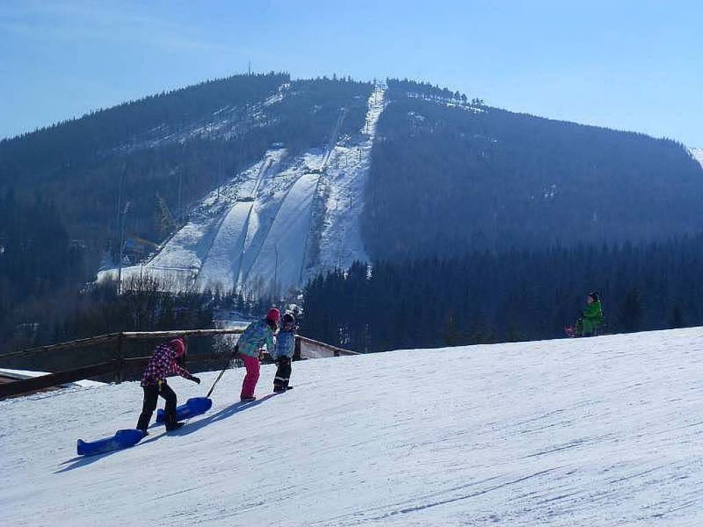 Sport: běžecké tratě přímo za domem navazují na magistrály, sjezdovky, v dosahu skibus, bobová dráha, lanový park, skokanské můstky, minigolf, koupaliště, tenisové kurty, cykloturistika, turistika, bowling, minigolfy 2x, školičky lyžařské, velké vyžití a spousty parků pro děti, lezecká stěna, čtyřkolky, a mnoho dalších.