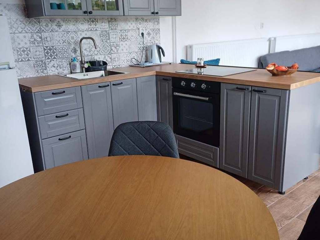 Vybavení kuchyně: kuchyňská linka, lednice s mrazákem, mikrovlnná trouba, indukční várná deska 4pl, el. trouba, veškeré potřebné nádobí i náčiní na vaření i servírování.