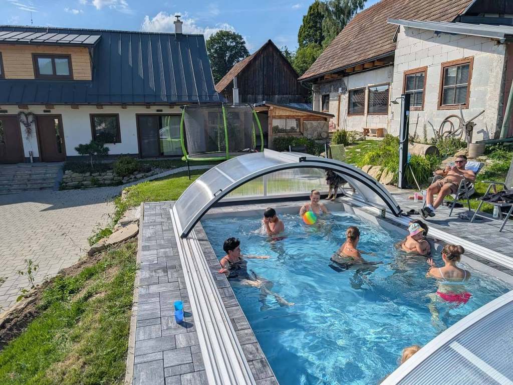 Svieži letný vánok a slnečné počasie si užijete zo spoločnej terasy, kde si môžete posedieť a ugrilovať niečo chutné pod zub. Pripravte si špeciality na grile alebo uvarte pravý kotlíkový guláš. Príjemným zážitkom bude aj relax vo fínskej saune, ktorá sa nachádza v pôvodnej kamennej pivnici. Po saunovaní sa schlaďte v ľadovom sude a odpočívajte zabalení v deke na pohodlných ležadlách. V areáli chalupy sa nájde miesto i na uskladnenie Vašich bicyklov a lyžiarskej výstroje. Pre našich hostí pripravujeme párty humno, ktoré čaká rekonštrukcia, a ktoré Vám v blízkej budúcnosti bude slúžiť ako priestor pre Vašu oslavu či vianočný večierok. Od lete 2025 je k dispozícii aj vonkajší bazén.