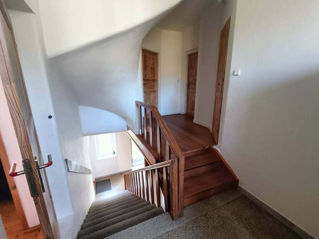 V patře je další samostatná (menší) kuchyně (sporák, trouba, lednice, mikrovlnka) a 4 ložnice pro 10 osob. Z chodby v patře je vstup na půdu, kde se vyspí dalších max. 6 osob (půdu možno obývat jen v letním období, není vytápěna). K dispozici jsou 2 koupelny.
