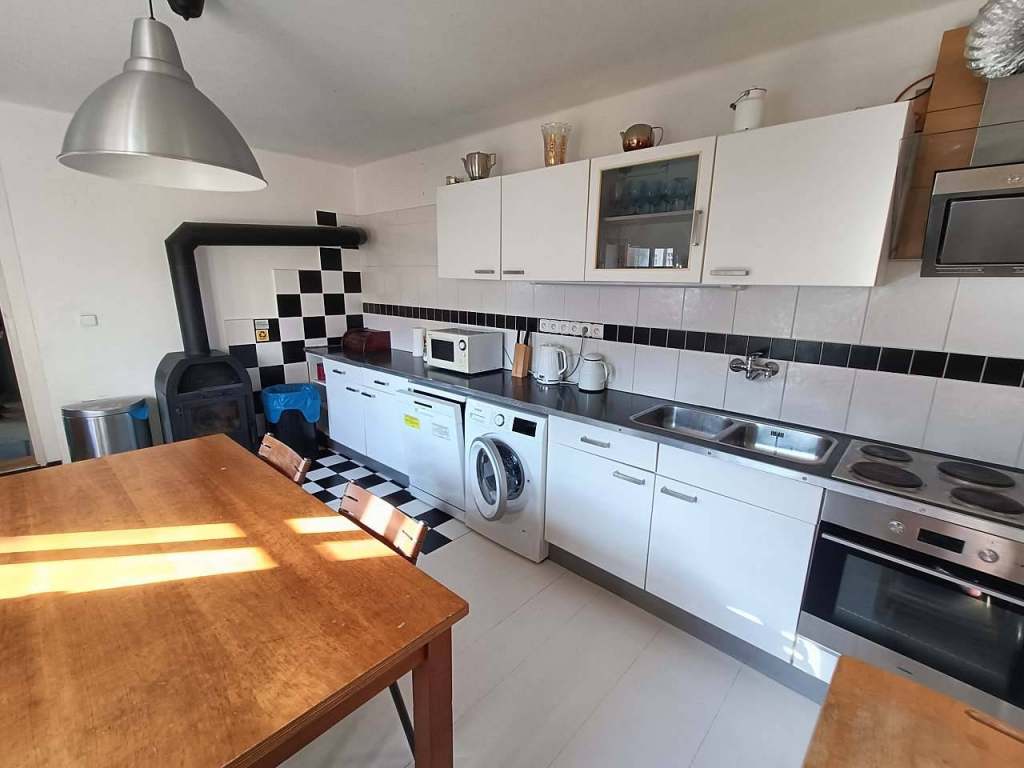 - plně zařízená kuchyň (myčka nádobí, pračka, mikrovlnná trouba, kávovar, jídelní stůl)