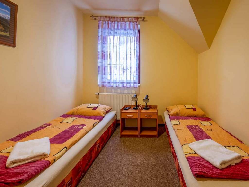 4x dvoulůžkový pokoj s televizí a vlastní koupelnou včetně WC.