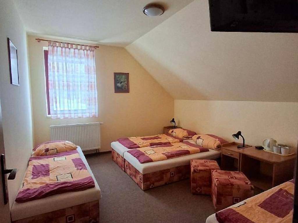 3x čtyřlůžkový pokoj s televizí a vlastní koupelnou včetně WC.