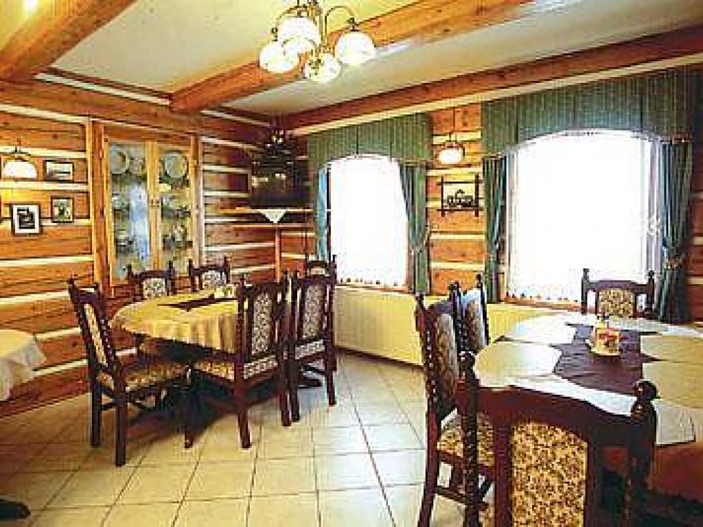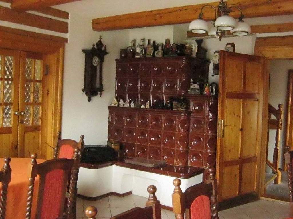 Jídelna se stylovým nábytkem a funkčními kachlovými a pěkným výhledem na Sněžku. Druhá jídelna v prosklené verandě slouží jako kavárna s překrásným výhledem na Černou horu.