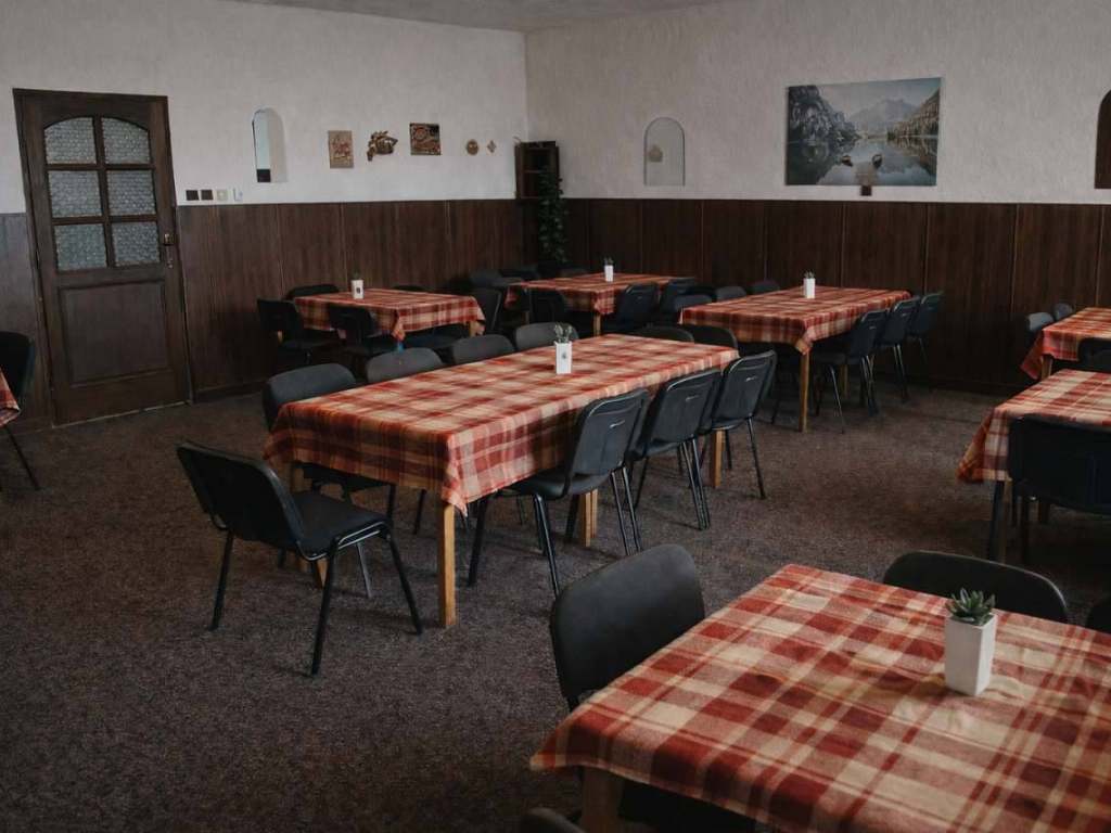 Možno zajistit kuchaře. K dispozici malá kuchyňka. Restaurace v dosahu 1km.