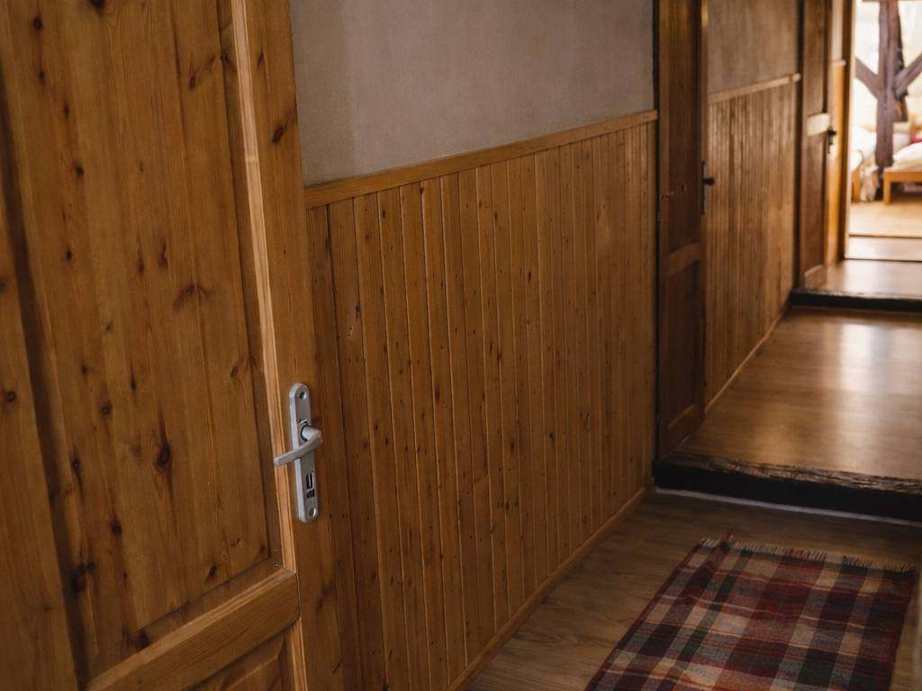 Rozložení ložnic: 3 x 3 lůžka, 3 x 2 lůžka, jeden pokoj 8 lůžek. Přilehlé chatky 9 x 4 lůžka.