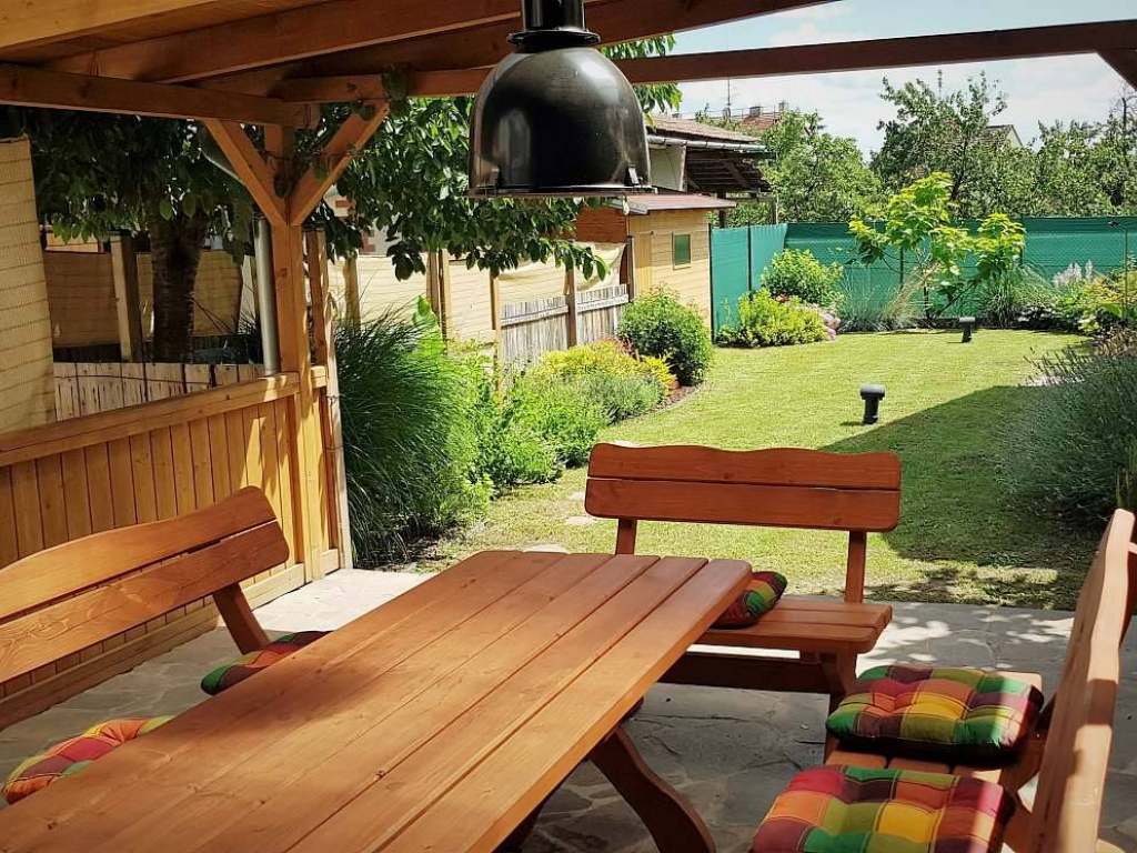 Zahrada a pergola: přístup na zahradu přímo z kuchyně po venkovních točitých schodech: - venkovní posezení pod pergolou až pro 10 osob - možnost dát si na trávník dětský bazének a napustit ho pitnou vodou z vodovodního řádu - venkovní sprcha - gril na dřevěné uhlí včetně uhlí (v zahradním domku na zahradě) - okrasné záhony - bylinky na zahradě volně k dispozici (máta, meduňka, rozmarýn, tymián)