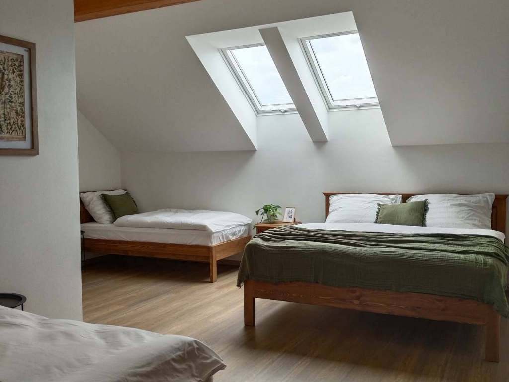 Josefův vinný sklep nabízí komfortní ubytování pro skupiny až 12 osob v klidném prostředí Moravského Žižkova s atmosférou jižní Moravy. Ubytovací část je umístěna v přízemí objektu, kde se nacházejí tři samostatné pokoje, každý s vlastní koupelnou a WC, což zajišťuje maximální soukromí a pohodlí pro všechny hosty.