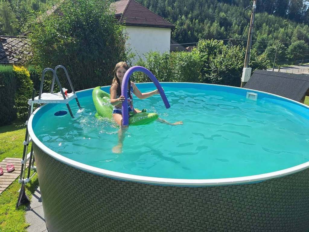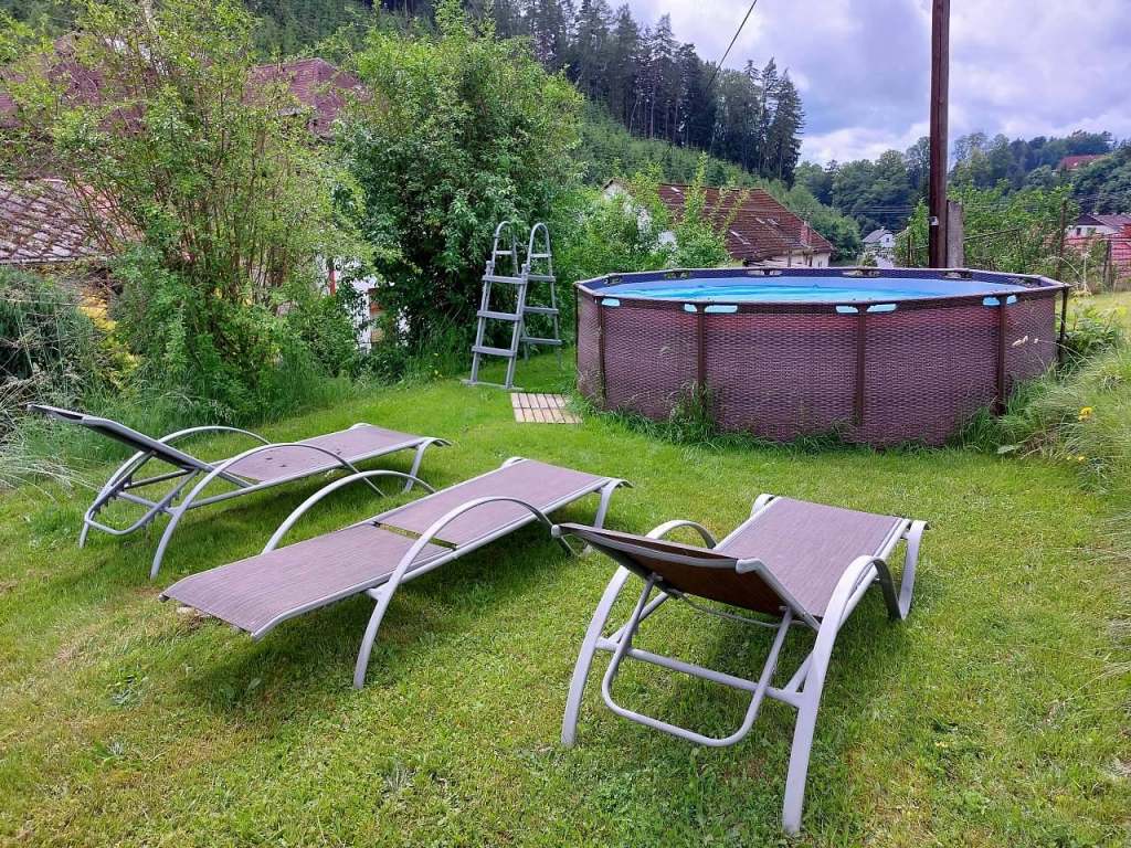 Bazén po dohodě k dispozici. Posezení u rybníčku či gril ohniště, trampolína, houpačka. Lze využít po objednání vířivku se slanou vodou poplatek 1000 Kč/ 2x za pobyt/. Elektrický gril, gril na uhlí, dřevo do ohniště připravíme na požádání + koš zdarma další za 300 Kč.