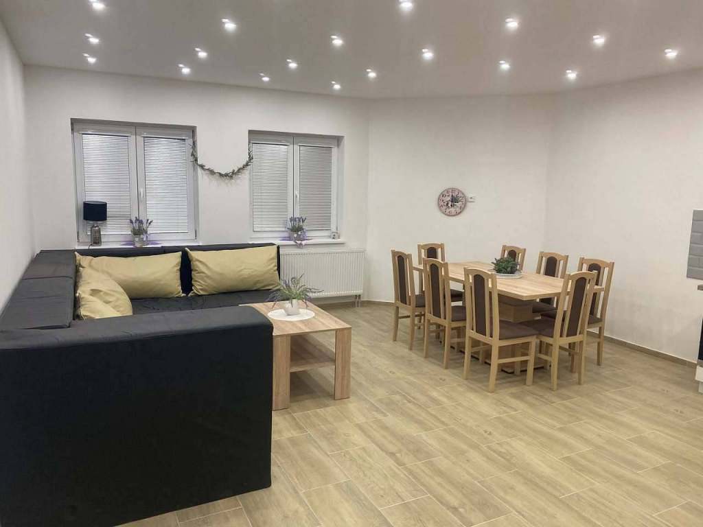Apartmán Levandule: se nachází v přízemí a pojme až 10 osob ve 4 dvoulůžkový ložnicích a 2 osoby v prostorném obývacím pokoji. Vybavená kuchyně s vestavěnou troubou a sklo keramickou deskou, vysokou lednicí s mrazákem, varnou konvicí, atd. Prostorný obývací pokoj ve kterém se dá i tančit, s obrovským gaučem a konferenčním stolem. Jídelní set pro 8 lidí. Každá ložnice je vybavena nočními stolky s lampičkou, skříní, přikrývky s povlečením a ručníkem. Velmi prostorná koupelna se sprchou, závěsné WC, velké umyvadlo se zrcadlem, žebříkový radiátor pro lepší sušení. Při vstupu botník s věšáky a zrcadlem.