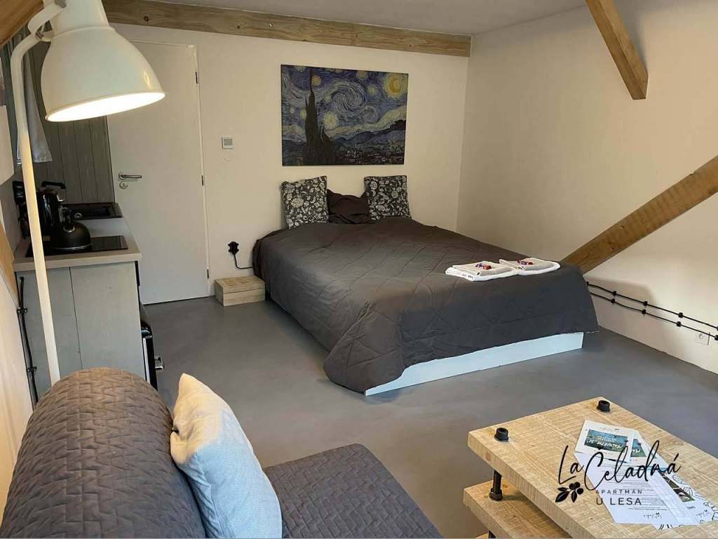 La - Čeladná apartmán u lesa je idylickým útočištěm přímo u lesa. S nadsázkou se dá říct: tam kde i klid chodí odpočívat. Jakmile dorazíte, objevíte útulný samostatný apartmán, který skrývá veškeré potřebné pohodlí a navíc přináší nezapomenutelný design. Rozloha apartmánu je 27 m2 + terasa.