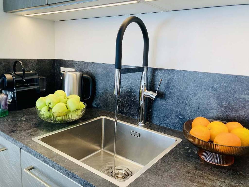 Kuchyně je vybavena nejmodernějšími elektrospotřebiči (lednice s mrazákem, myčka nádobí, elektrická varná deska, elektrická trouba, mikrovlnná trouba, espresso, rychlovarná konvice, topinkovač, toastovač, tyčový mixér). Ve vstupní chodbě se ve vestavěné skříni nachází pračka, sušička a sušák na prádlo, součástí vybavení apartmánu je rovněž žehlička, žehlicí prkno, vysavač a fén. Smart TV s kabelovou televizí a WiFi zdarma. Zahradní nábytek. Ložní prádlo, ručníky.