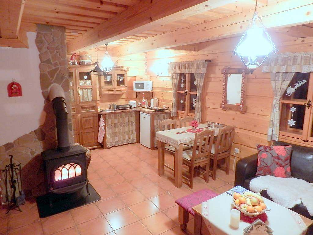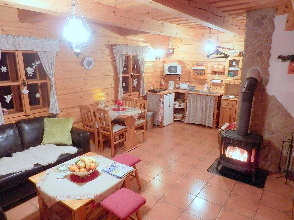 privítací drink, 100% bavlnená posteľná bielizeň, uteráky a osušky, mydlo, vatové tyčinky, odličovacie tampóny, toaletný papier, sušič na vlasy, TV so SAT, kvalitné WiFi, všetky energie vrátane spotreby vody, spotreby elektrickej energie a v zimných mesiacoch aj spotreby dreva do liatinových piecok, spoločenské hry, kompletne vybavená samostatná izba - herňa pre deti, detská kolíska z masívu pre deti do 6 mesiacov, 2x detská postieľka + detská stolička pre deti do 3 rokov (na vyžiadanie), kompletne 2x vybavený kuchynský kút s jednálenským stolom (mikrovlnná rúra, rýchlovarná kanvica, hriankovač, kávovar, dvojplatnička so sklokeramickou doskou, chladnička s mraziacim priestorom, kávovar, kuchynský riad, kuchynské utierky, saponát na riad), k disozícii 3 druhy kávy, čaj, koreniny, soľ, cukor, záhradný nábytok, gril, grilovacie náradie, malé detské ihrisko v záhrade (leto, jar a jeseň), priestor na odkladanie lyží (pre každý apartmán zvlášť). Z obidvoch apartmánov je možný vstup do samostatnej detskej izby, ktorá je plná hračiek. (v prípade rezervácie celej sú cez túto izbu apartmány priechodzie. ) V záhrade sa nachádza detské ihrisko pre najmenšie deti: drevený domček, šmýkačka, drevené autíčko a malý obchodík so zeleninou na hranie. Veľké detské ihrisko zatienené stromami je 400 m od drevenice. K dispozícii v letných, jarných a jesenných mesiacoch je záhradné sedenie s grilom (grilovacie náradie je k dispozícii) a pre deti do 5 rokov aj malý detský bazénik. V cene je zahrnutý aj rekreačný poplatok a tiež izbový servis a v lete drevená kúpacia kaďa bez ohrevu vody.