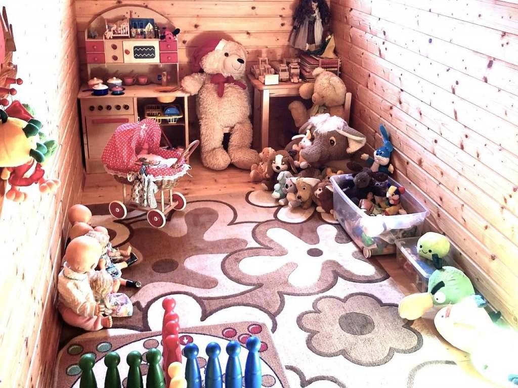 V prípade rezervácie celej drevenice sú apartmány medzi sebou priechodzie cez detskú izbu s hračkami.