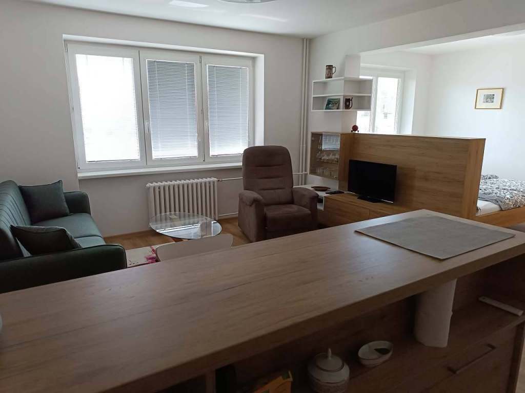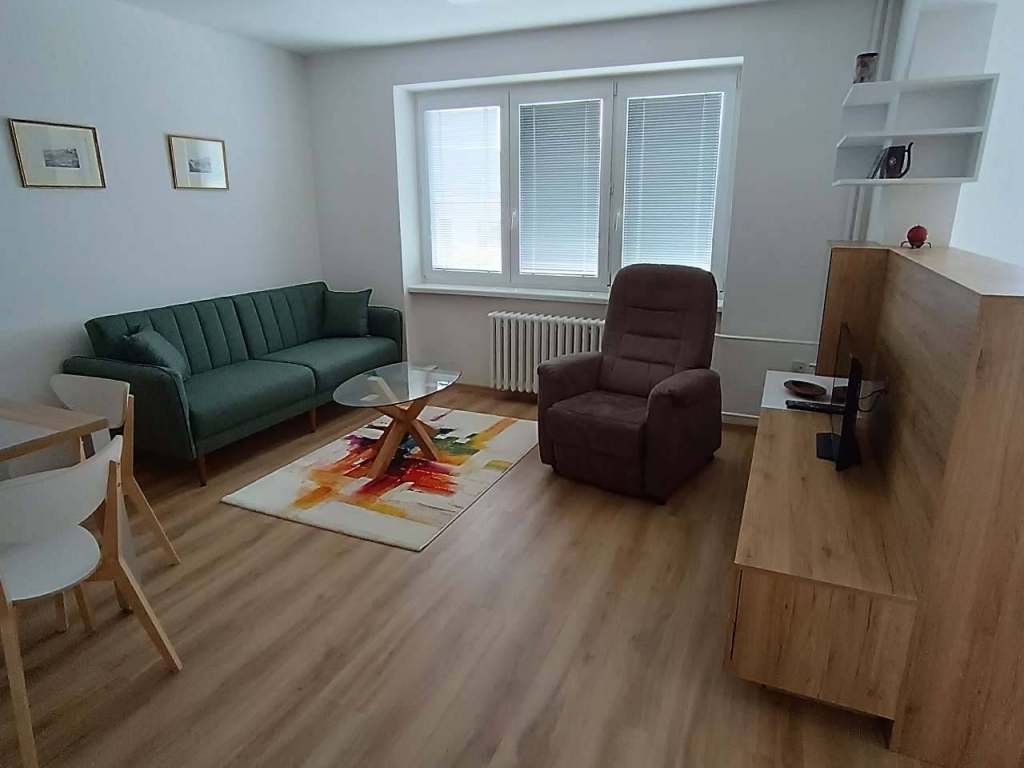 Pronajímáme nově zrekonstruovaný apartmán v přízemí se společným vstupem do objektu. Vlastní bytová jednotka má 50m² se vstupem přes halu domu. Pohovka v místnosti je rozkladatelná.