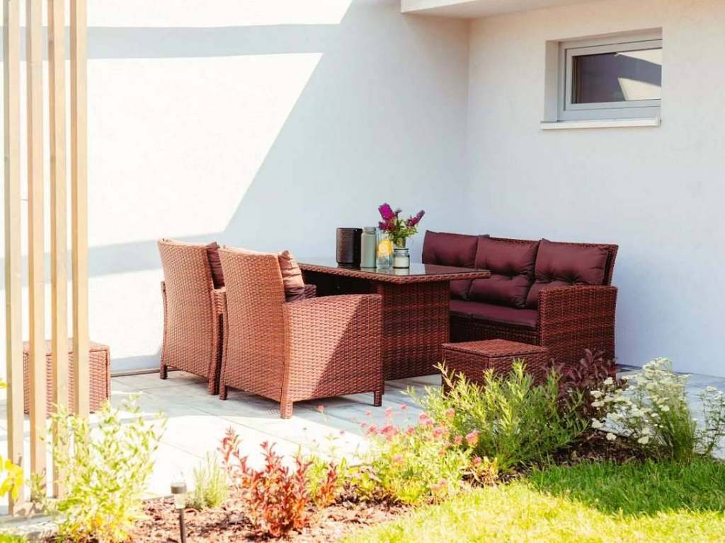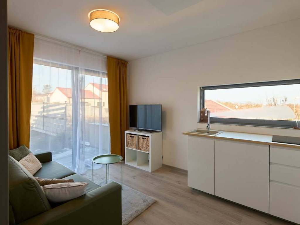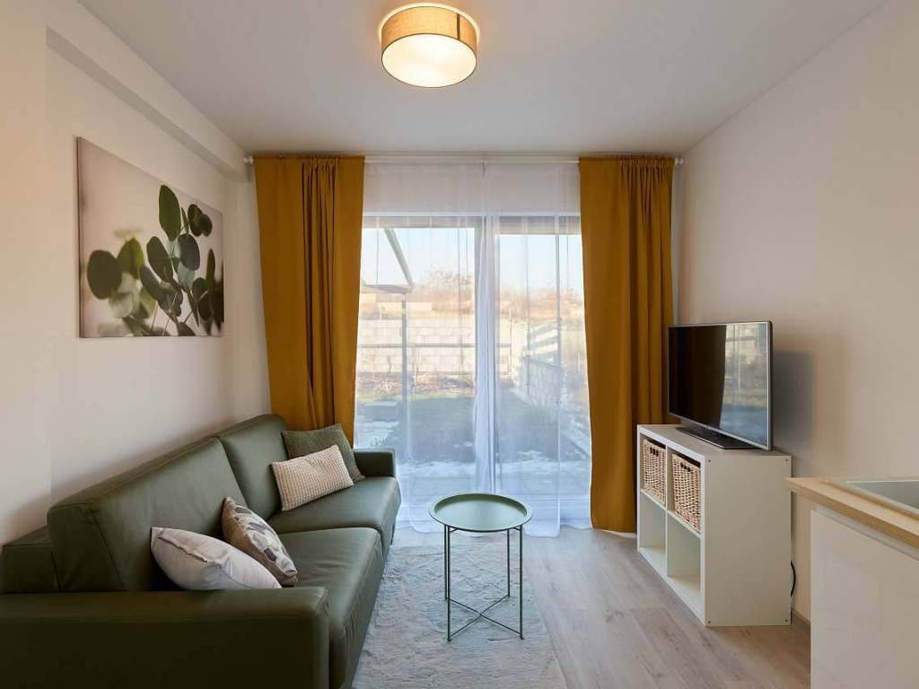 Apartmány mají samostatnou ložnici s dvoulůžkem, obývací pokoj s kuchyňským koutem a rozkládací pohovkou s dvoulůžkem na každodenní spaní a soukromou zahradu s posezením na terase.