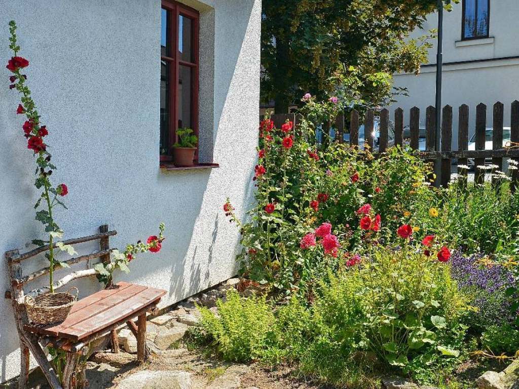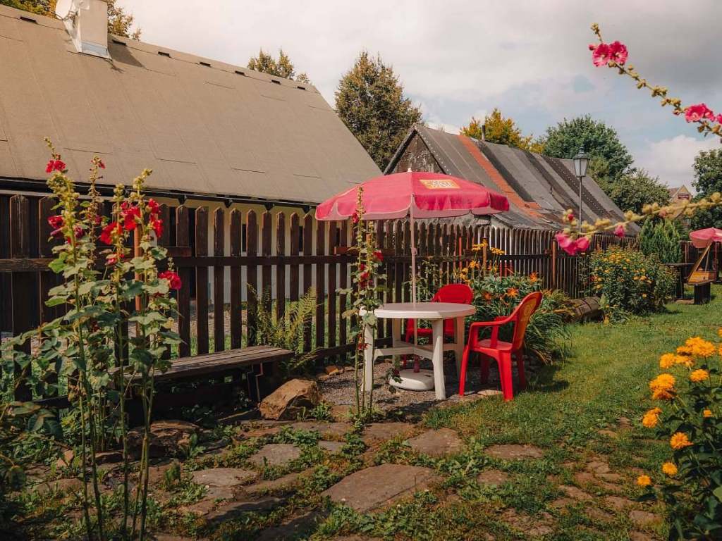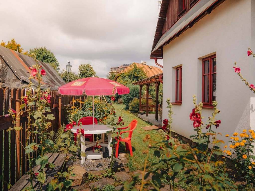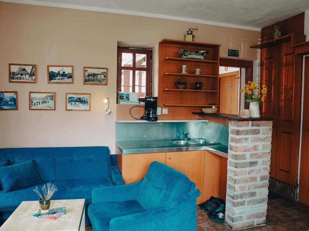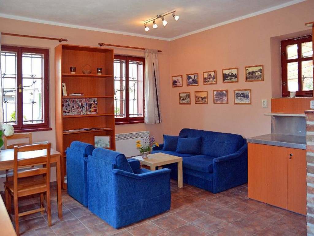V objektu je pro oba apartmány společná společenská místnost vybavená stolem a židlemi, sedací soupravou, televizí. Společná kuchyňka vybavená lednicí s mrazákem, varnou konvicí, překapávačem na kávu, mikrovlnnou troubou, troubou, el. vařičem, nádobím. V celém objektu je dostupná Wi - Fi. K objektu přiléhá krytá terasa se stoly a židlemi, která navazuje na oplocenou zahradu. Na zahrádce je pískoviště s dřevěným domkem pro malé návštěvníky. Dále jsou na zahradě k dispozici stoly a židle. K letnímu posezení lze využít i gril. Kola lze uložit do dřevěného přístřešku.