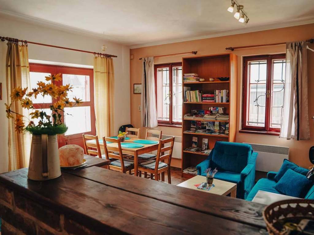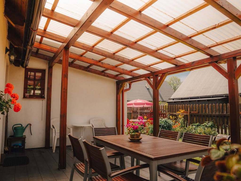 Apartmán č. 1 je v přízemí objektu, z apartmánu se vychází na velkou zastřešenou terasu.