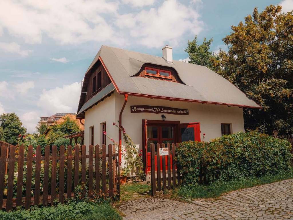 Chaloupka Na Kamenném schodě se nachází na Českomoravské vrchovině na rozhraní Železných hor a Žďárských vrchů, ve středu města Hlinska, ve velmi klidné části památkové rezervace Betlém, na vlastním oploceném pozemku. Chalupa má dva apartmány se samostatnými vchody, společenskou místnost s televizí, plně vybavenou kuchyňku. V celém objektu je dostupná Wi - Fi. Z apartmánu je krásný výhled na chaloupky starého Betléma. Možnost posezení v přízemí na zastřešené terase nebo na zahradě v různých zákoutích se stoly a lavicemi. Parkovat lze u objektu na neplaceném parkovišti. Kola možno uložit do dřevěného přístřešku. Jedním z kouzel této lokality je to, že z živého centra města jste po 30 metrech v krásné, klidné, odpočinkové zóně. Památková rezervace Betlém je součástí skanzenu Veselý Kopec (5km). V blízkosti objektu (10min. pěší chůze) se nachází nově zbudovaný přírodní koupací biotop, přírodní lom Srní (5 min. autem), ve vzdálenosti 2 km lze navštívit zábavní park Peklo Čertovina. Příznivci výstav mohou každým rokem zavítat do místní galerie a shlédnout výstavu Výtvarné Hlinecko, navštívit muzeum a v nedalekých Kameničkách galerii Antonína Slavíčka. I v zimním období je zde možné nepřeberné množství aktivit, v blízkosti se nachází Ski areál Hlinsko (2 sjezdovky), Ski areál Trhová Kamenice, plavecký bazén, squash, krytá tenisová hala, pěkný zimní stadión, kino.