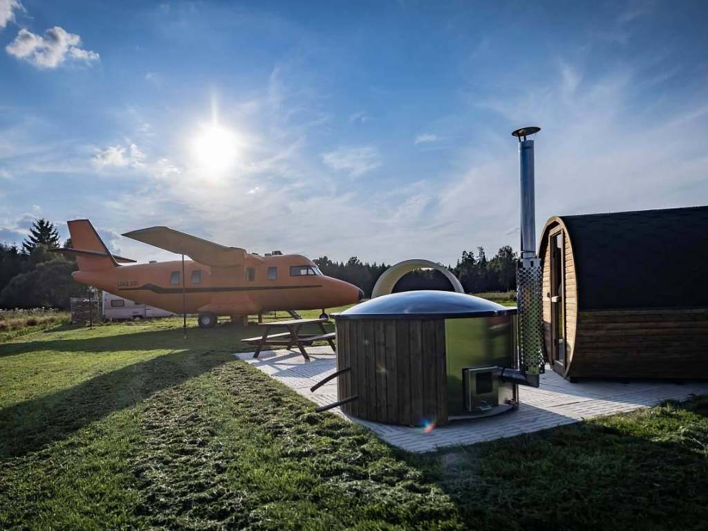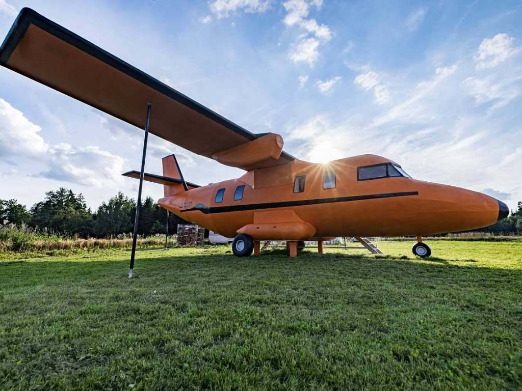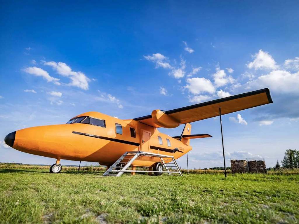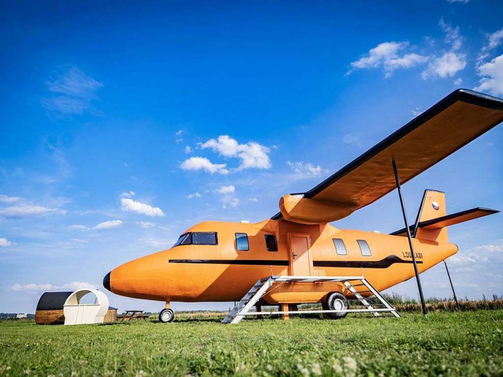 Naše luxusní glampingové ubytování jsou inspirována leteckým průmyslem a současně spojena s čistým bydlením v dřevostavbách. To poskytuje pocit preciznosti a čistoty podobný kokpitu monumentálního dopravního letadla. Každé ráno tak můžete zažít vzrušení z pohledu na ranvej jako skutečný pilot. Naše ubytování nabízí moderní kuchyň, koupelnu se sprchovým koutem, toaletou a pohodlný obytný prostor. Designu je věnována maximální pečlivost a vy si tak můžete vychutnat zábavu u stolu při pozorování okolí letadla z kokpitu. Jedná se o ideální volbu pro ty, kteří hledají jedinečný glampingový zážitek. Naše letadla mohou být zcela samostatná, což vám umožní nechat starosti na zemi a žít život jako v oblacích. S letadlem můžete flexibilně přistát, kdekoli se rozhodnete, a vychutnat si maximální svobodu. Jako bonus je v těsné blízkosti letadla wellness centrum - sauna, koupací sud a ochlazovací káď, pergola, gril, ohniště a pískoviště pro vaše ratolesti.