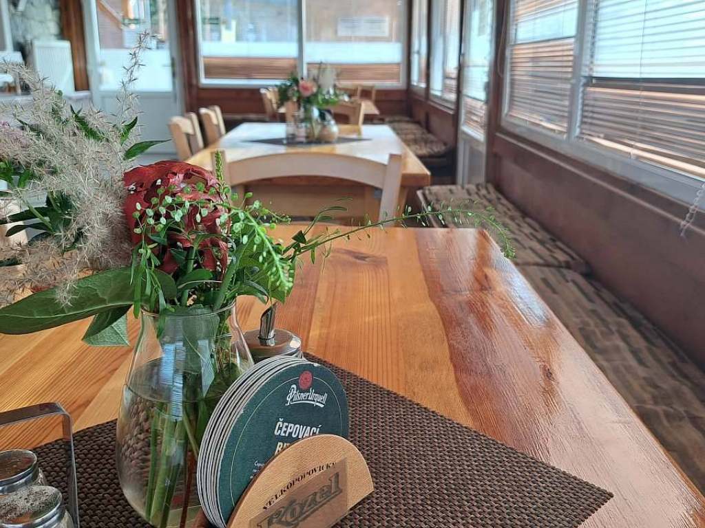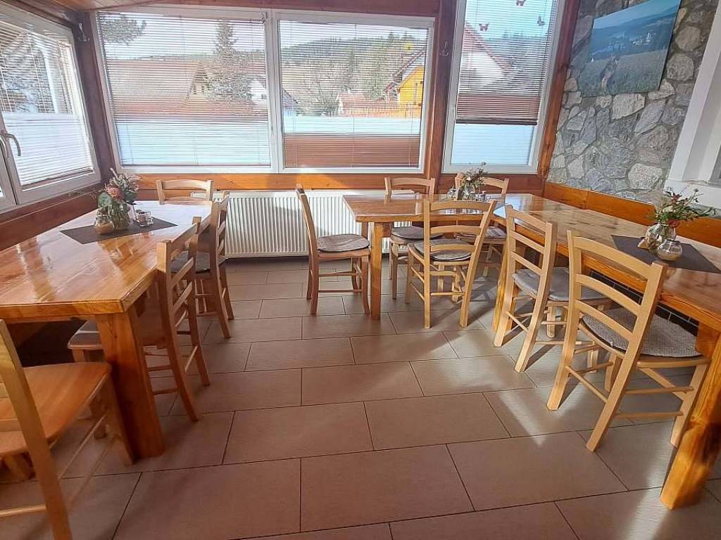 Stravování možné po domluvě, snídaně a večeře přímo v pensionu. Obchod s potravinami je vzdálen cca 200m, stejně tak další restaurace.