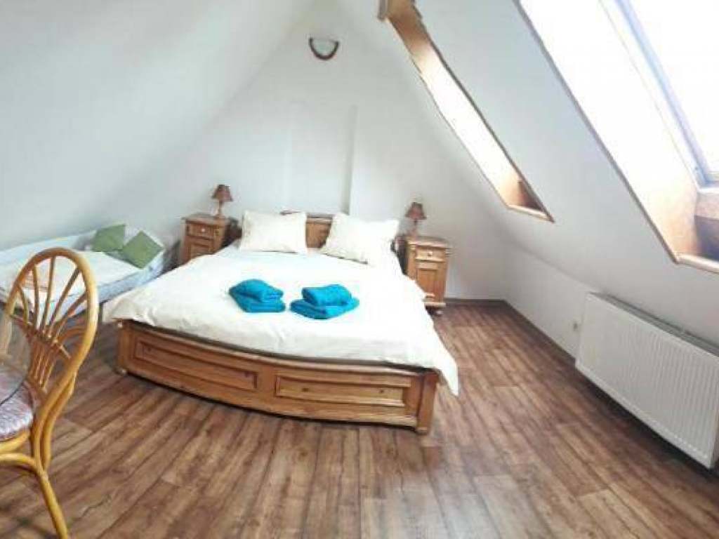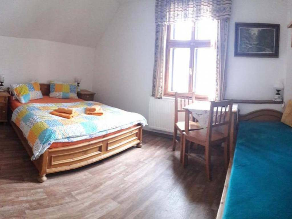 Pokoj s manželskou postelí a jednou přistýlkou. V pokoji se nachází sociální zařízení, Tv a Wifi zdarma. Součástí jsou i ručníky, osušky, povlečení a fén.