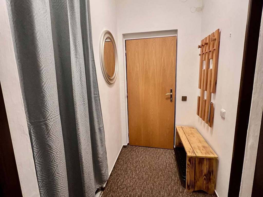 Apartmán je mezonetového typu, o celkové podlahové ploše 62 metrů čtverečních. Dole je velký obývací pokoj s vybavenou kuchyňskou linkou, nahoře dvě ložnice a koupelna. Apartmán... zobrazit detail