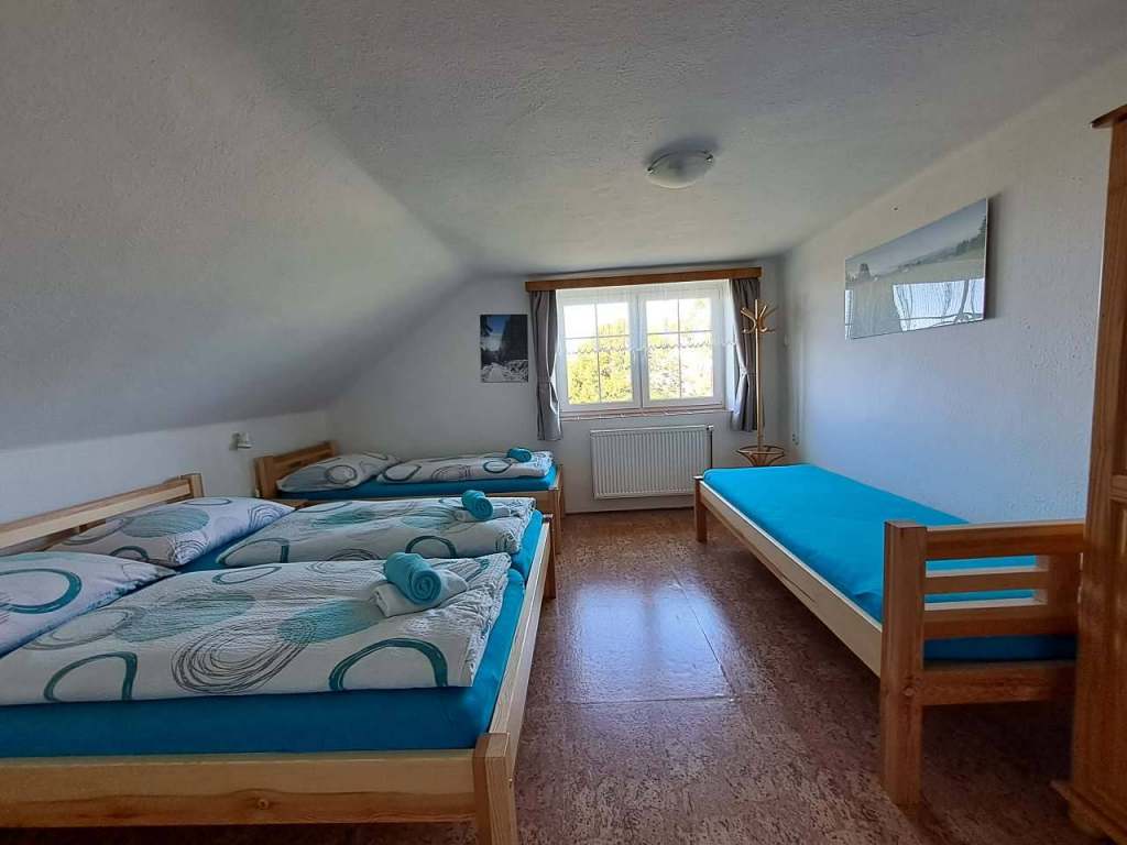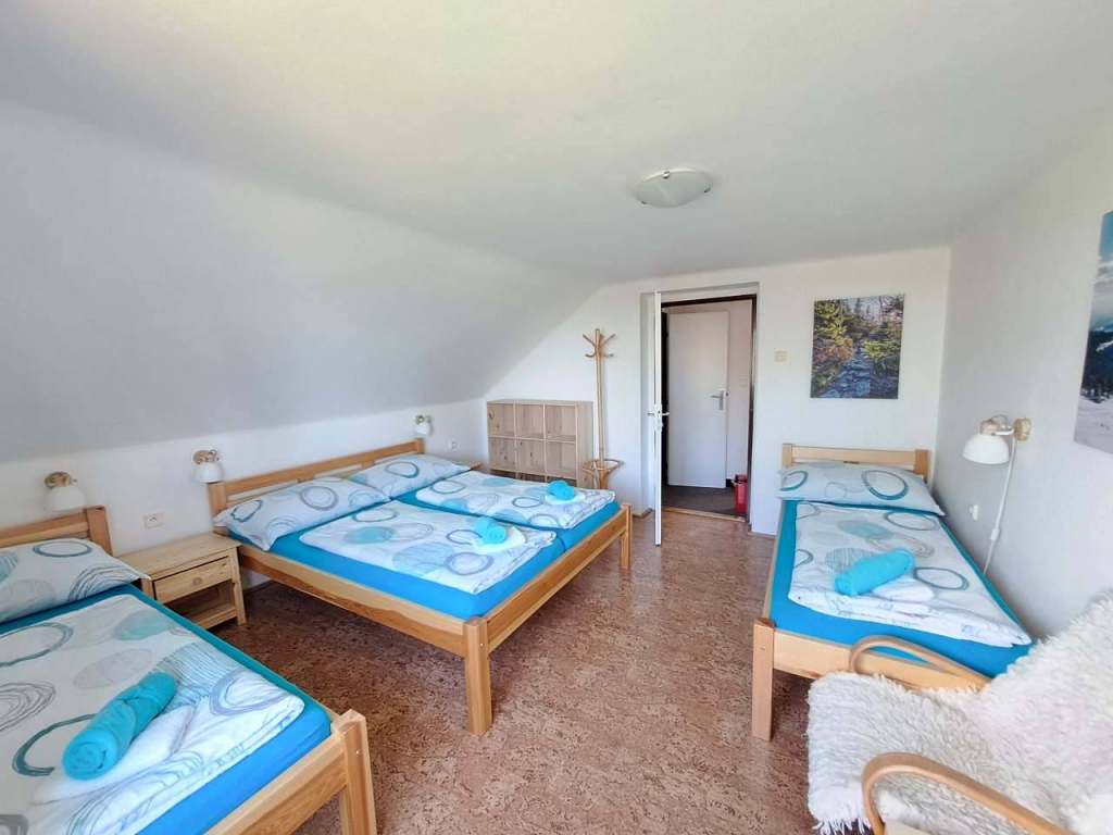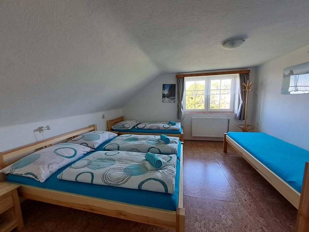 3x čtyřlůžkový pokoj - 1 pokoj má své vlastní sociální zařízení, 2 pokoje spolu sdílejí sociální zařízení (na tyto pokoje neubytováváme hosty, kteří se neznají)
