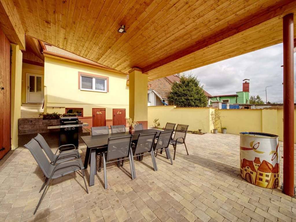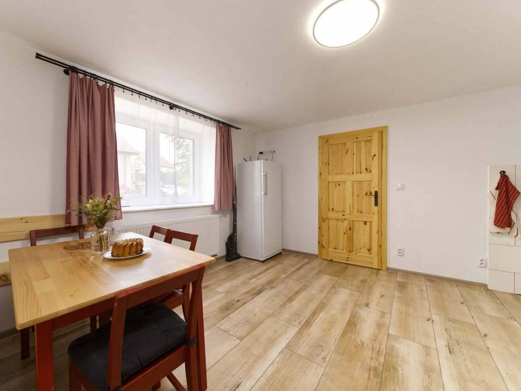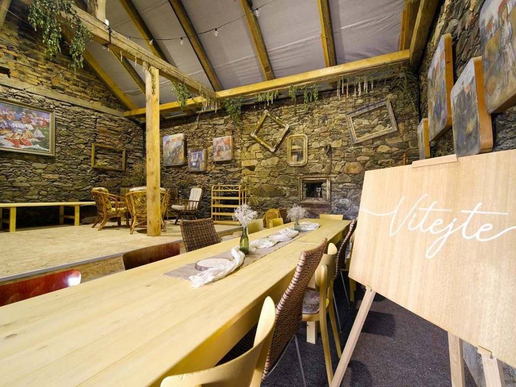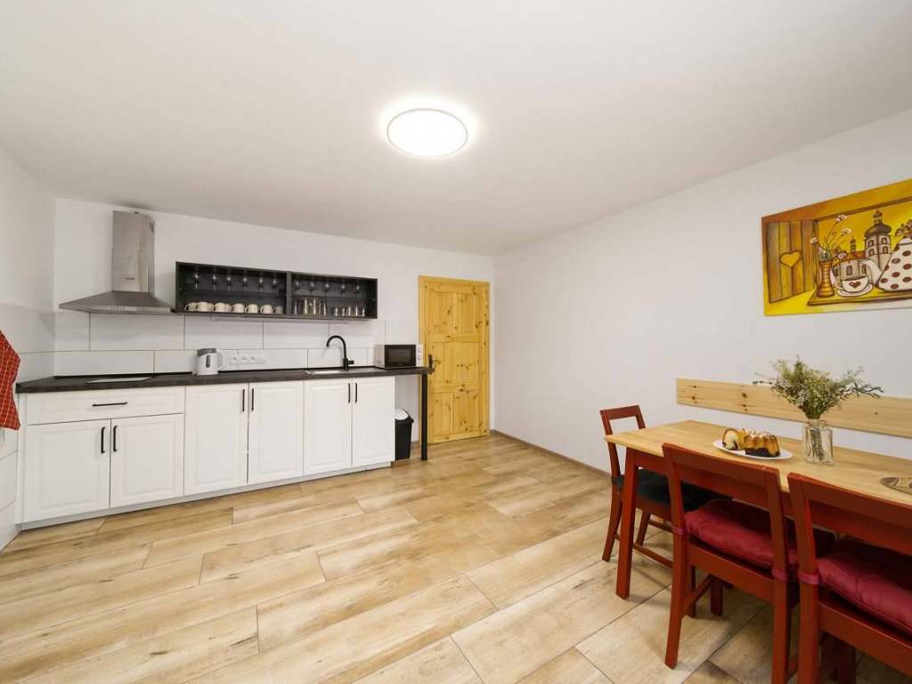 Kuchyně (kuchyňská linka, indukční vařič, mikrovlnná trouba, rychlovarná konvice, nádobí pro 10 osob, jídelní stůl se židlemi, lednice, televizor). Wi - Fi připojení zdarma. Terasa s posezením pro 10 osob. Venkovní kuchyně vybavená nádobím, plynový gril. Venkovní toaleta. Sklad na kola. Dětský koutek ve dvoře. Stodola jako společenská místnost.