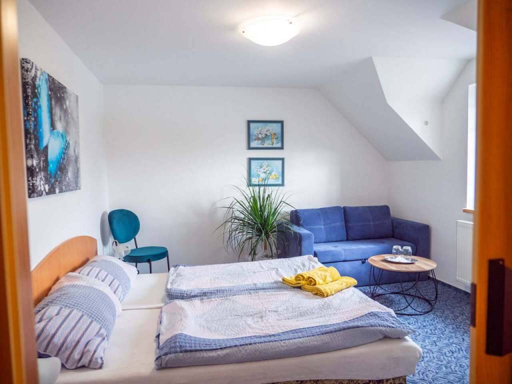 Nabízíme ubytování ve 4 dvoulůžkových pokojích a v jednom apartmá s balkonem. V apartmá lze ubytovat až 5 osob.